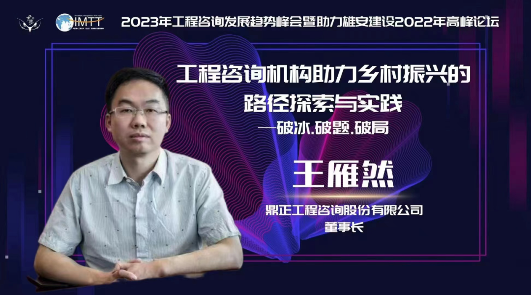 王雁然董事長受邀參與論壇并發(fā)表主題演講,他以《工程咨詢機(jī)構(gòu)助力鄉(xiāng)村振興的路徑探索與實(shí)踐》為題,從破冰、破局、破題三個(gè)層次逐步切入,先后論述了新時(shí)代背景下推進(jìn)鄉(xiāng)村振興戰(zhàn)略面臨的機(jī)遇與挑戰(zhàn)。